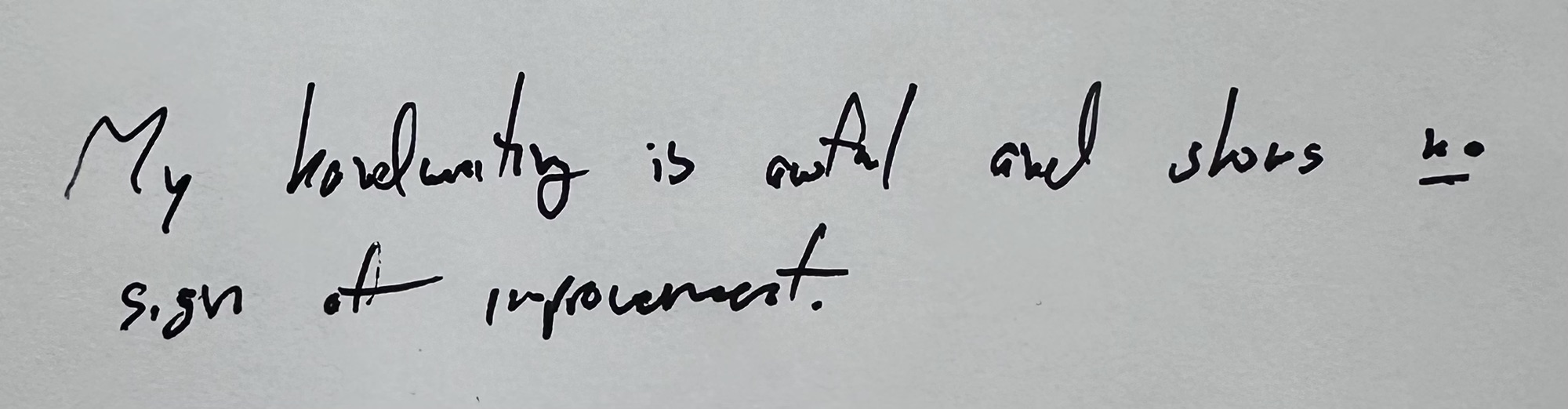 Barely legible scrawl aside, there's something else handwriting has going for it: it's a uniquely human action, untouched by the scourge of AI generated messages (though I'm sure, even without googling it, that there's some idiotic machine out there that takes AI generated text and turns it into printed handwriting).