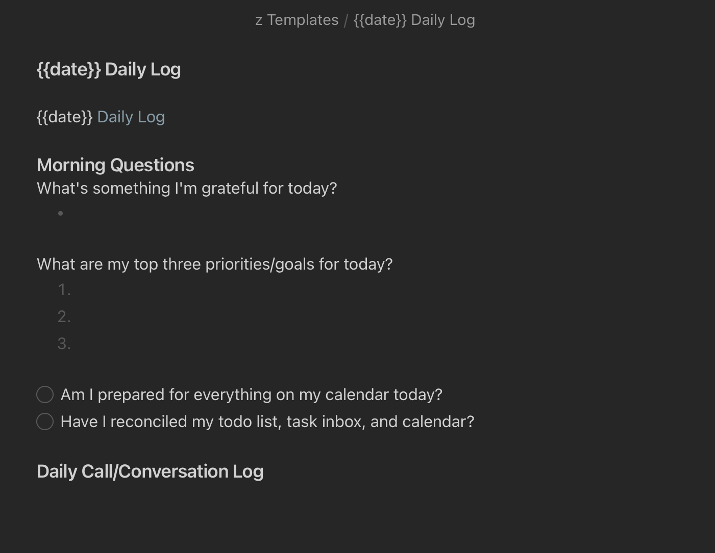 Whether you use an Obsidian template like I do (shout out to the friends who not only tolerate me talking about these types of things, but who also share their templates and workflows in return), my question to you is the same: could you build in a simple morning practice of expressing gratitude?